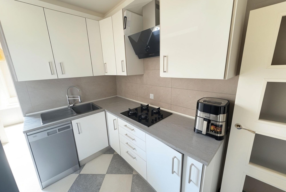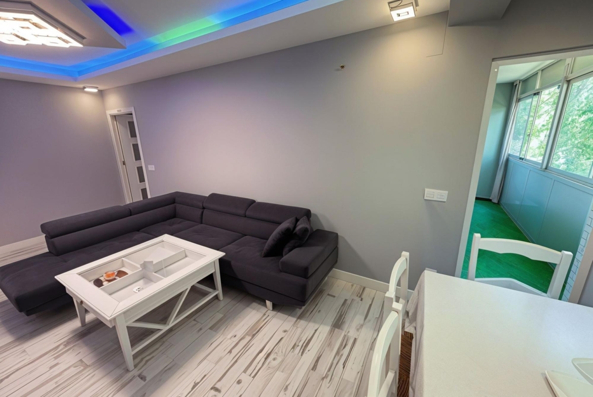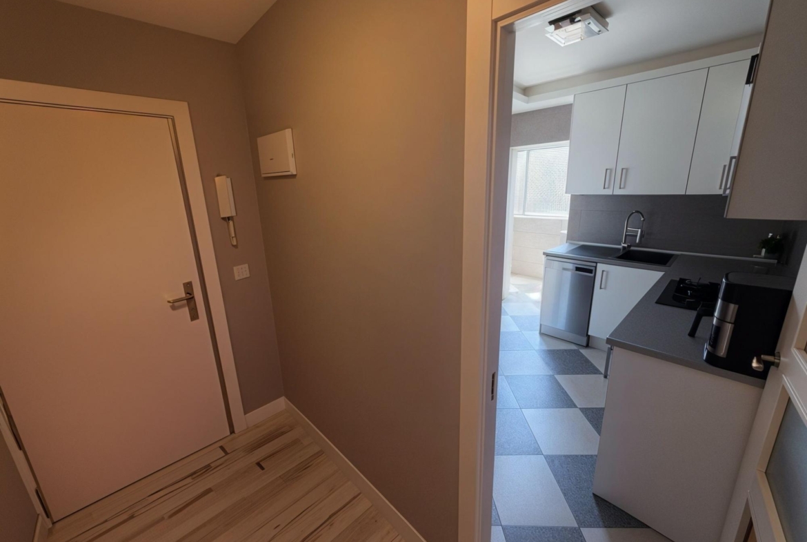 El piso ha sido reformado con materiales de calidad: suelos de tarima laminada, paredes con pintura lisa y carpintería interior lacada en blanco, que aportan un ambiente moderno y acogedor. Las ventanas son de PVC con sistema Climalit oscilobatiente, lo que garantiza un excelente aislamiento térmico y acústico.