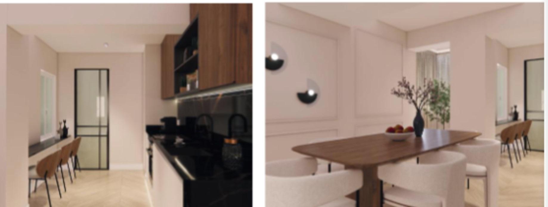 Cocina salon comedor totalmente amueblada y equipada con electrodomesticos de alta gama , con cuarto de lavandería aparte.