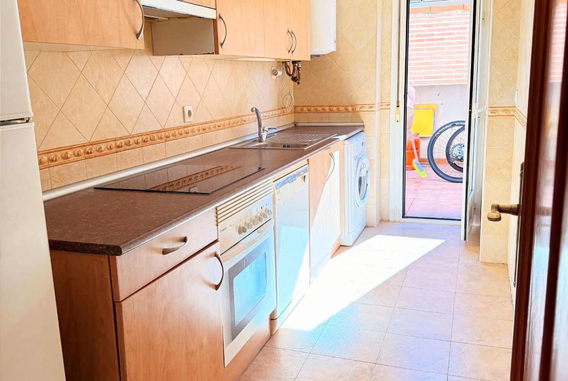 La cocina, cómoda y bien distribuida, conecta con la terraza e invita a la creatividad culinaria, mientras que la zona de descanso se compone de dos dormitorios con buena luz natural y un cuarto de baño completo.