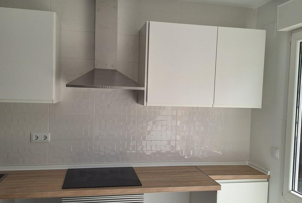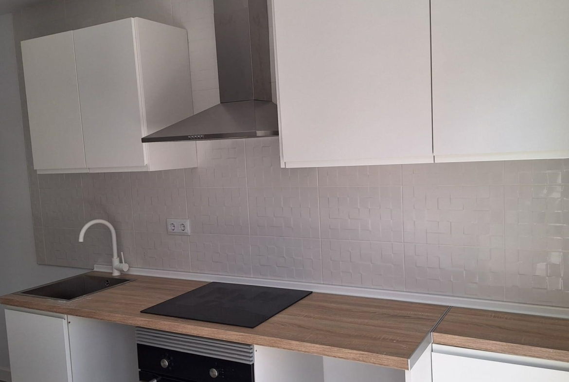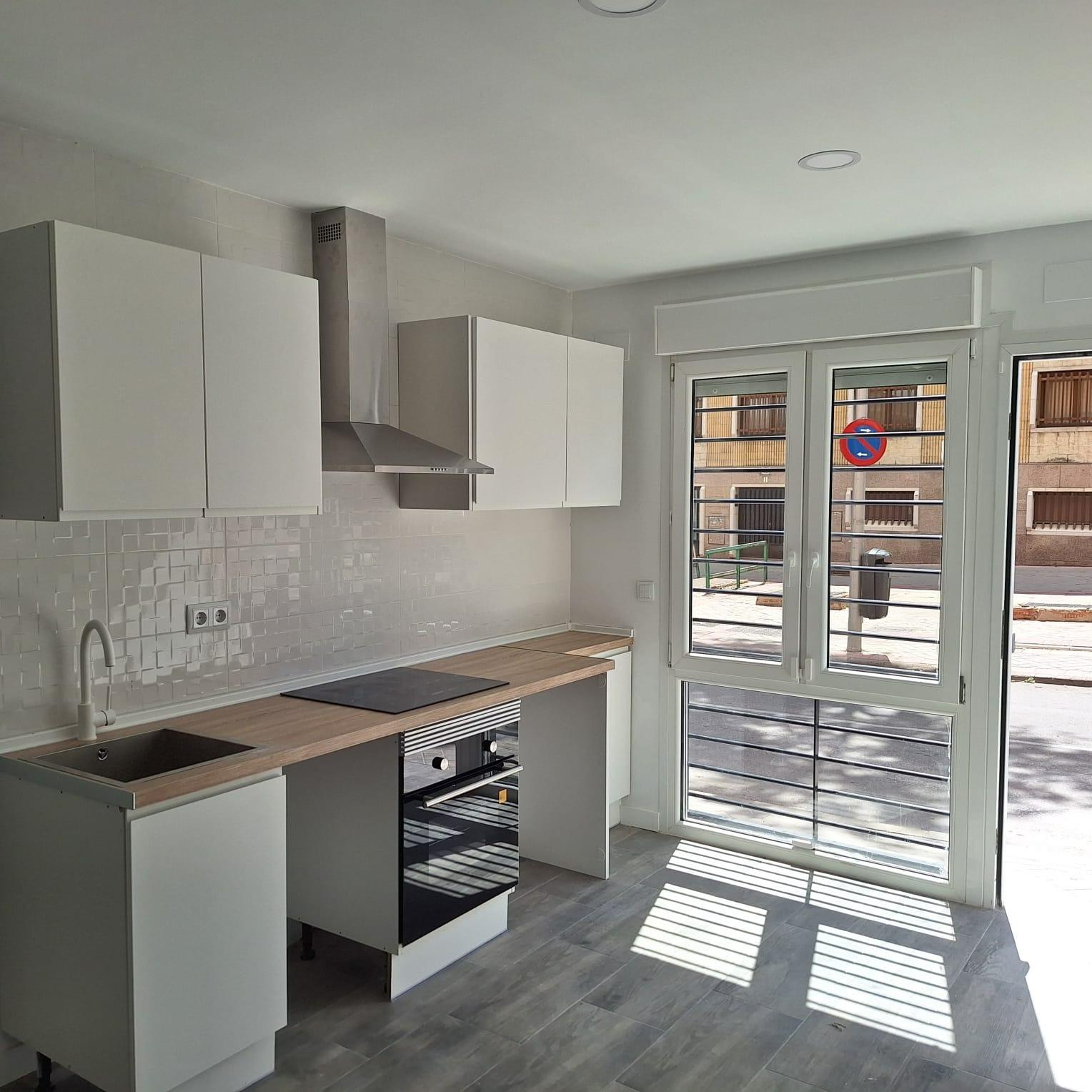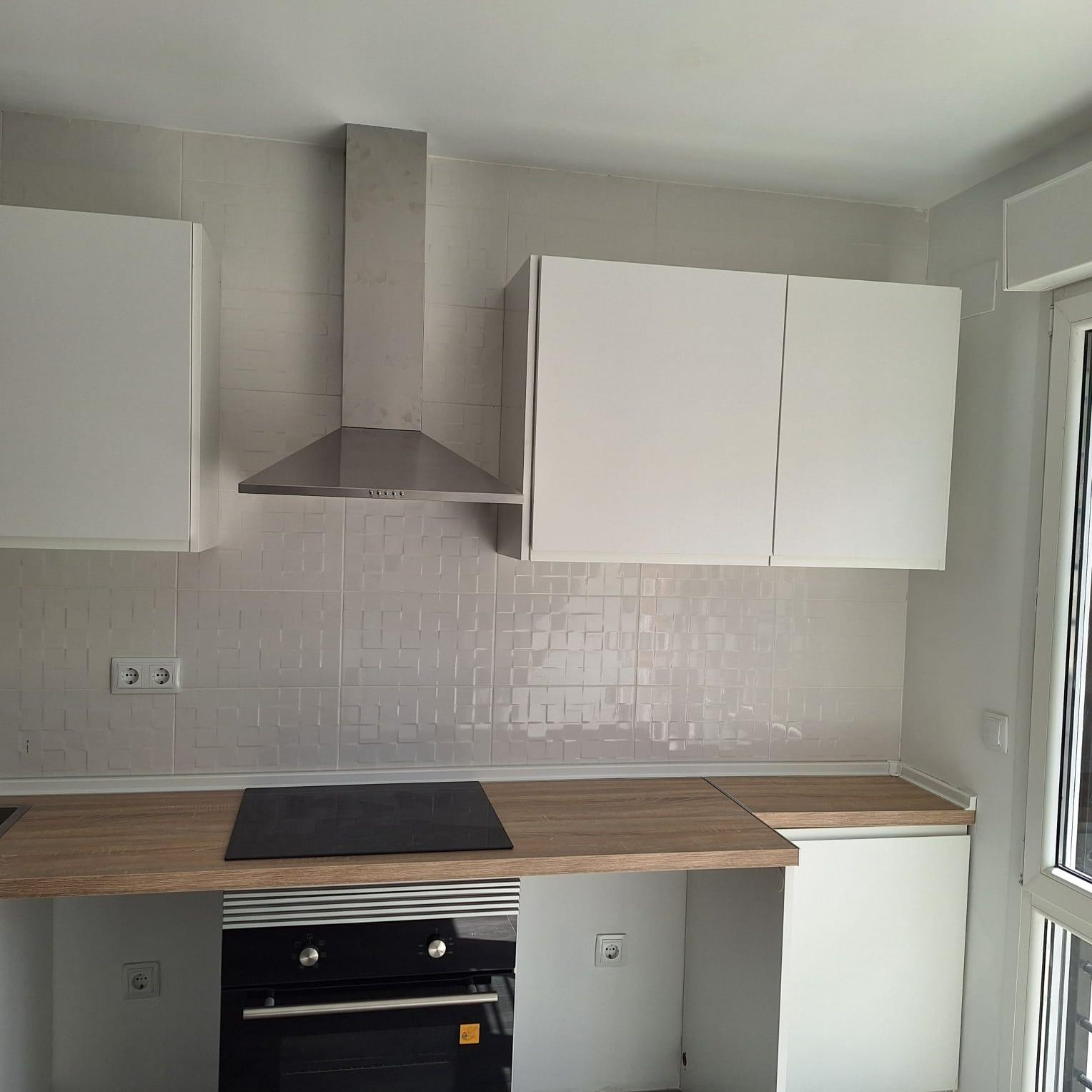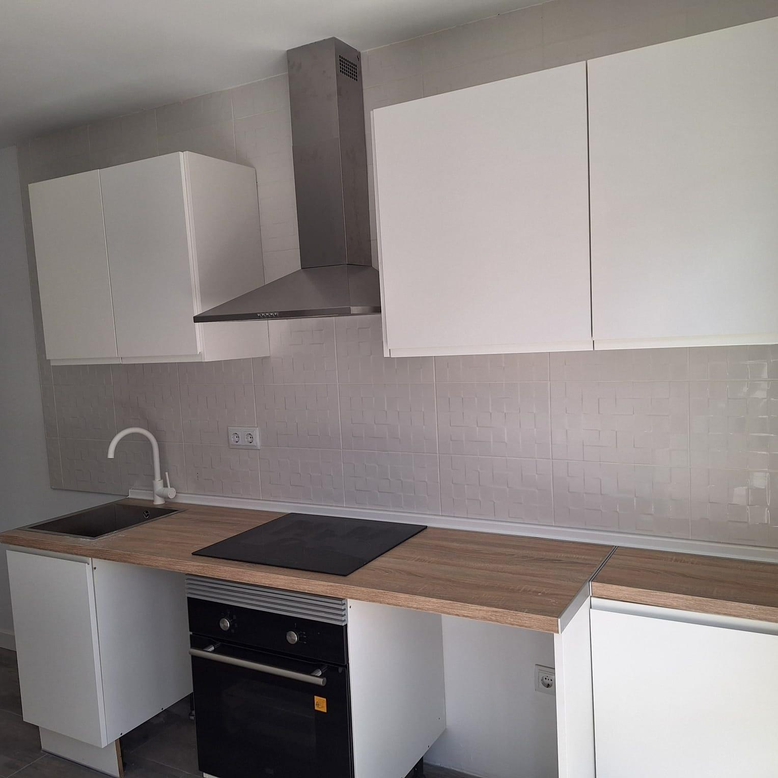 Dispone de cocina amueblada recientemente, con muebles altos y bajos ,se alquila con todos los electrodomésticos de última generación, como es horno, campana de carbono, lavaplatos, lavadora, nevera, vitrocerámica etc.