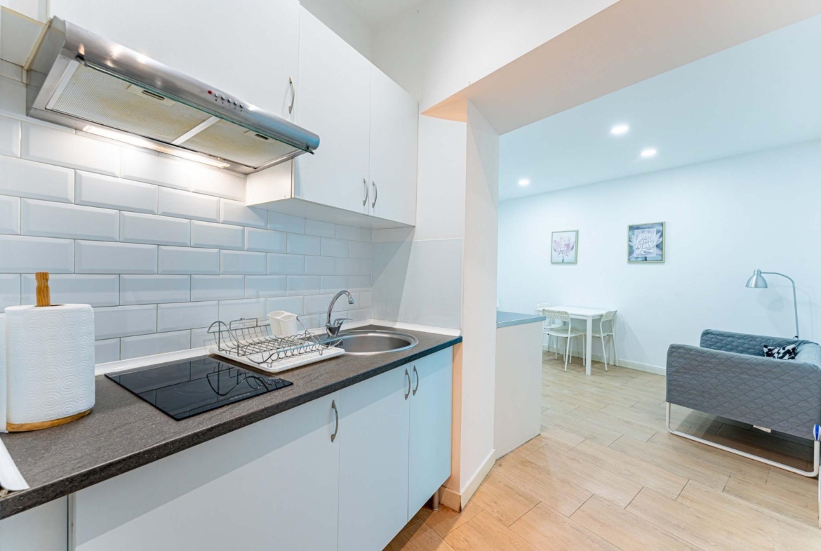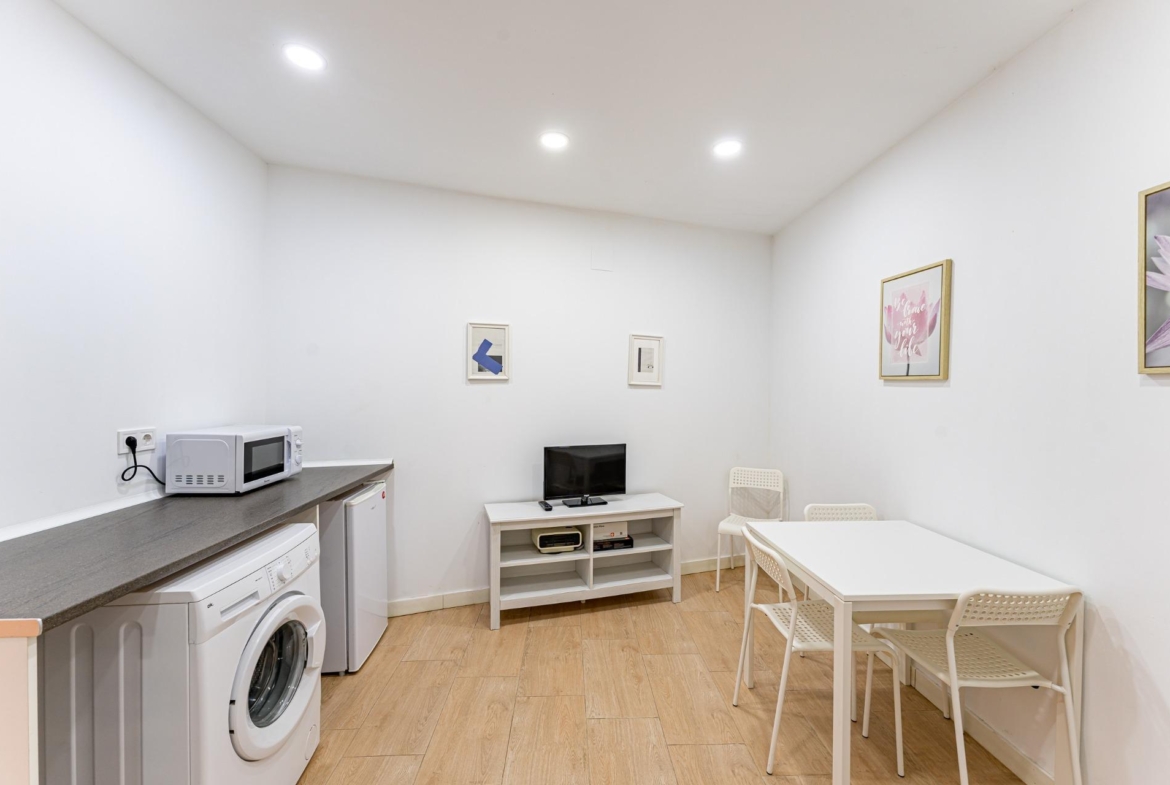 El espacio está cuidadosamente distribuido en una moderna área abierta que integra el salón-comedor con una cocina americana, creando un ambiente diáfano que maximiza la sensación de amplitud. Dispone de un dormitorio equipado con un amplio armario empotrado y un baño completo.