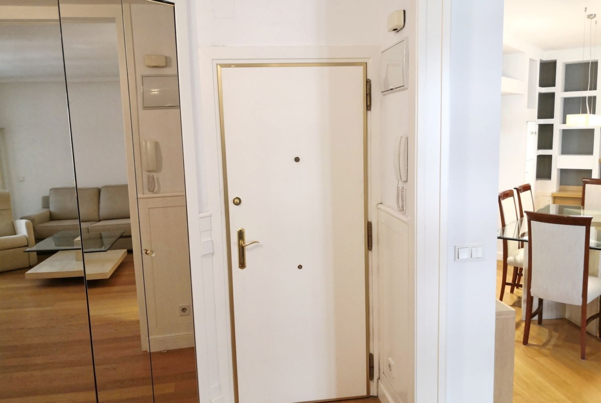 Armarios revestidos lacados en blanco de gran capacidad. Suelos de tarima de gran calidad. Puertas lacadas en blanco. Paredes lisas. Ventanas oscilobatientes de PVC con dobles cristales de aislamiento térmico y acústico. Persianas de aluminio. Agua caliente y calefacción individual por gas natural. Puerta acorazada con llave de servicio. Caja fuerte.