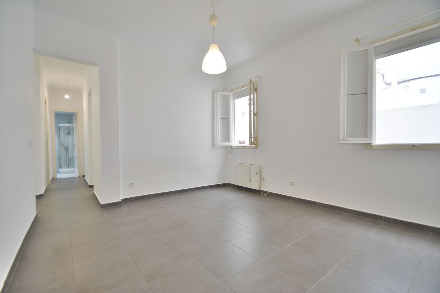 Calle Málaga, 5. Planta baja interior, con 4 ventanas a un patio de manzana muy luminoso, impecable, moderno, con gran claridad y luz natural. Se alquila vacío salvo cocina amueblada de diseño moderno con todos los electrodomésticos. Muy buenas calidades, conservando elementos antiguos como las puertas y ventanas de madera renovadas, persianas modernas de aluminio, techos altos, calefacción por emisores térmicos de bajo consumo, termoacumulador eléctrico de 100 l. para agua caliente, sanitarios cambiados, plato de ducha con mampara.