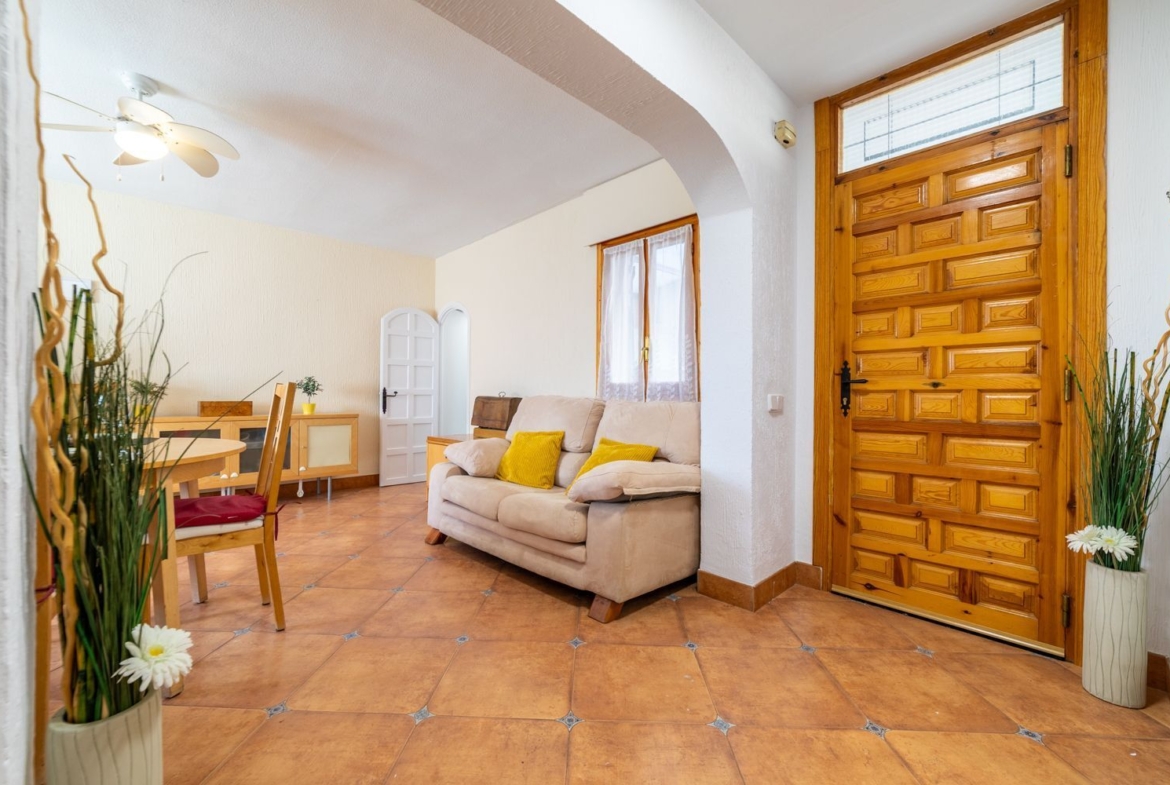 El acceso a la vivienda se realiza a través de un porche cubierto, cerrado y con calefacción, que amplía la entrada y genera un espacio adicional conectado directamente con el interior, utilizable durante todo el año.