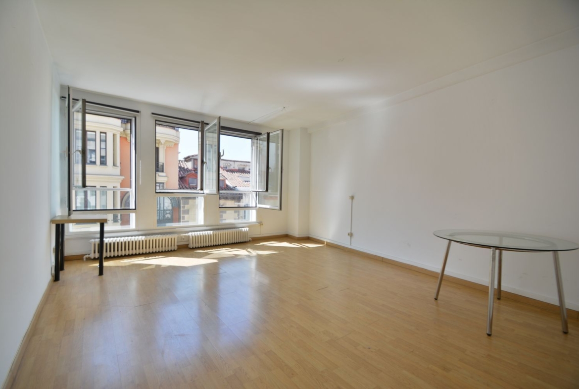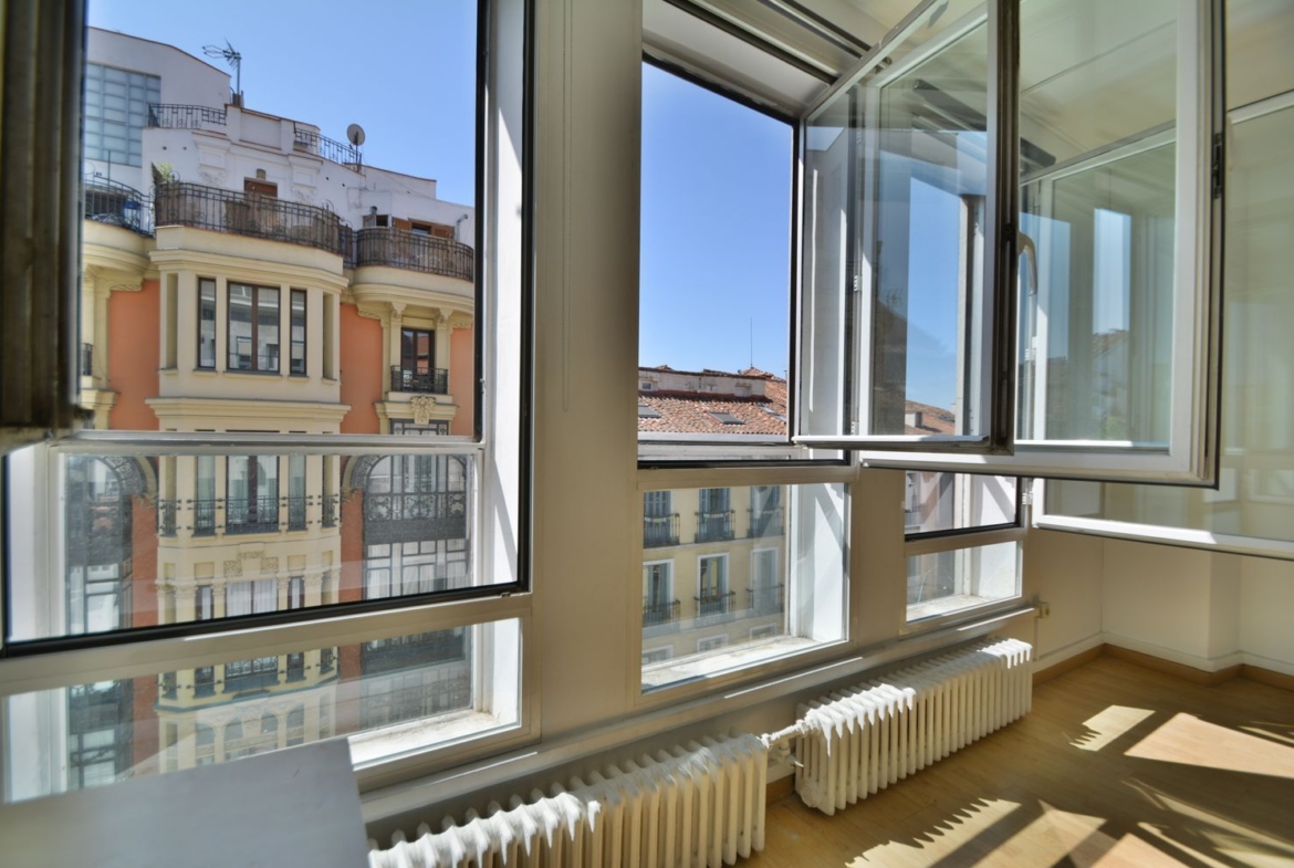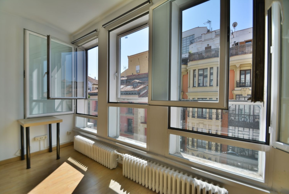 Calle Mayor, 58, a escasos metros de la Plaza Mayor y la Puerta del Sol. Vivienda de 57 m2 construidos (con comunes) y 45 m2 útiles, en 5ª planta exterior, con 2 ascensores, sin obstáculos arquitectónicos, conserje de lunes a viernes en horario de mañana y tarde.