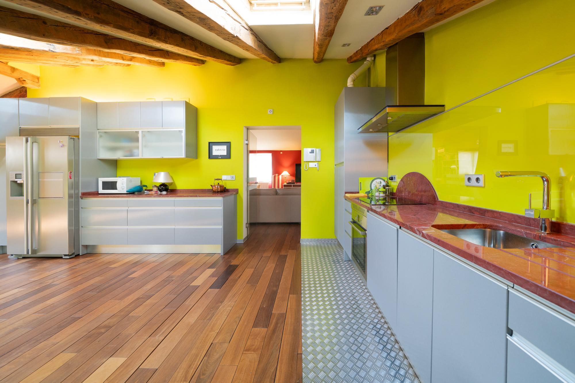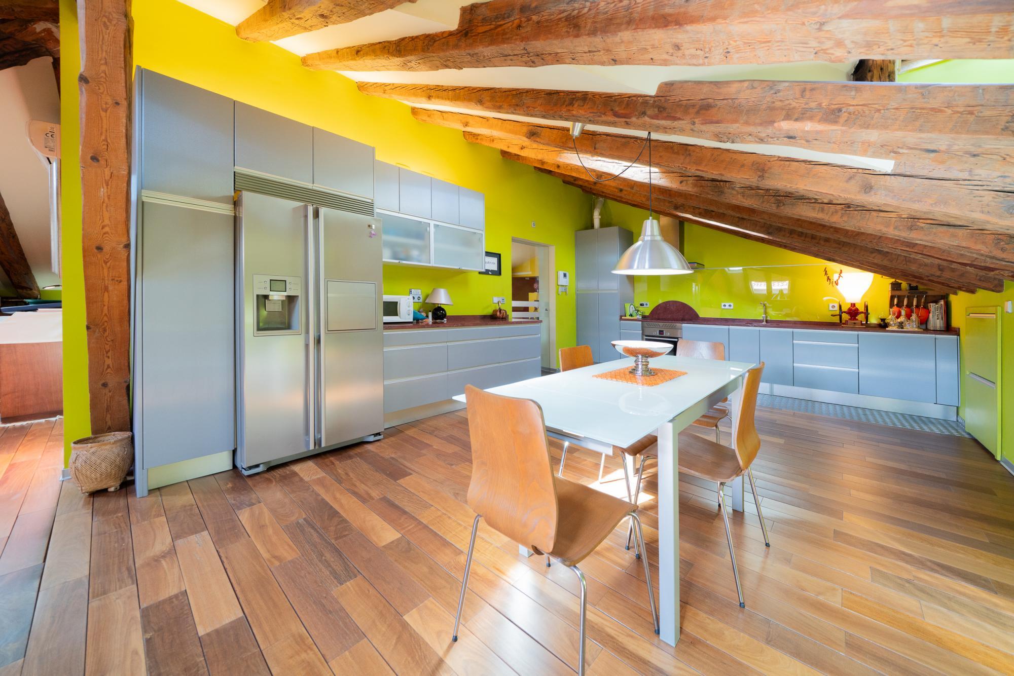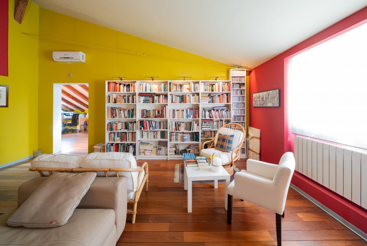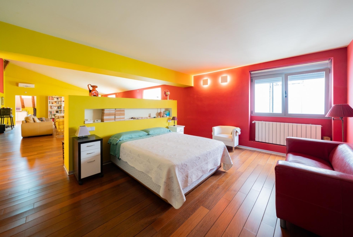 AMPLIA y exclusiva buhardilla en el centro de Madrid. Totalmente reformada, con especial atención a los aislamientos térmicos y acústicos y con un perfecto equilibrio entre el sabor de lo antiguo y los mejores materiales modernos: tarima maciza de Ipe, ventanas con Climalit y preinstalación para motorizar las persianas, cocina con encimera de granito y electrodomésticos de alta gama, ventanas tipo Velux con filtro ultravioleta, sistema para garantizar el suministro instantáneo de agua caliente en los baños, instalación de sonido y datos por toda la casa.
