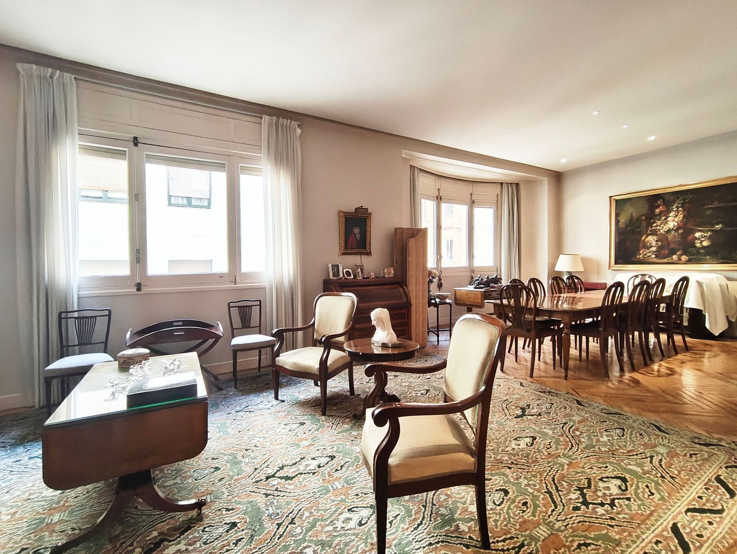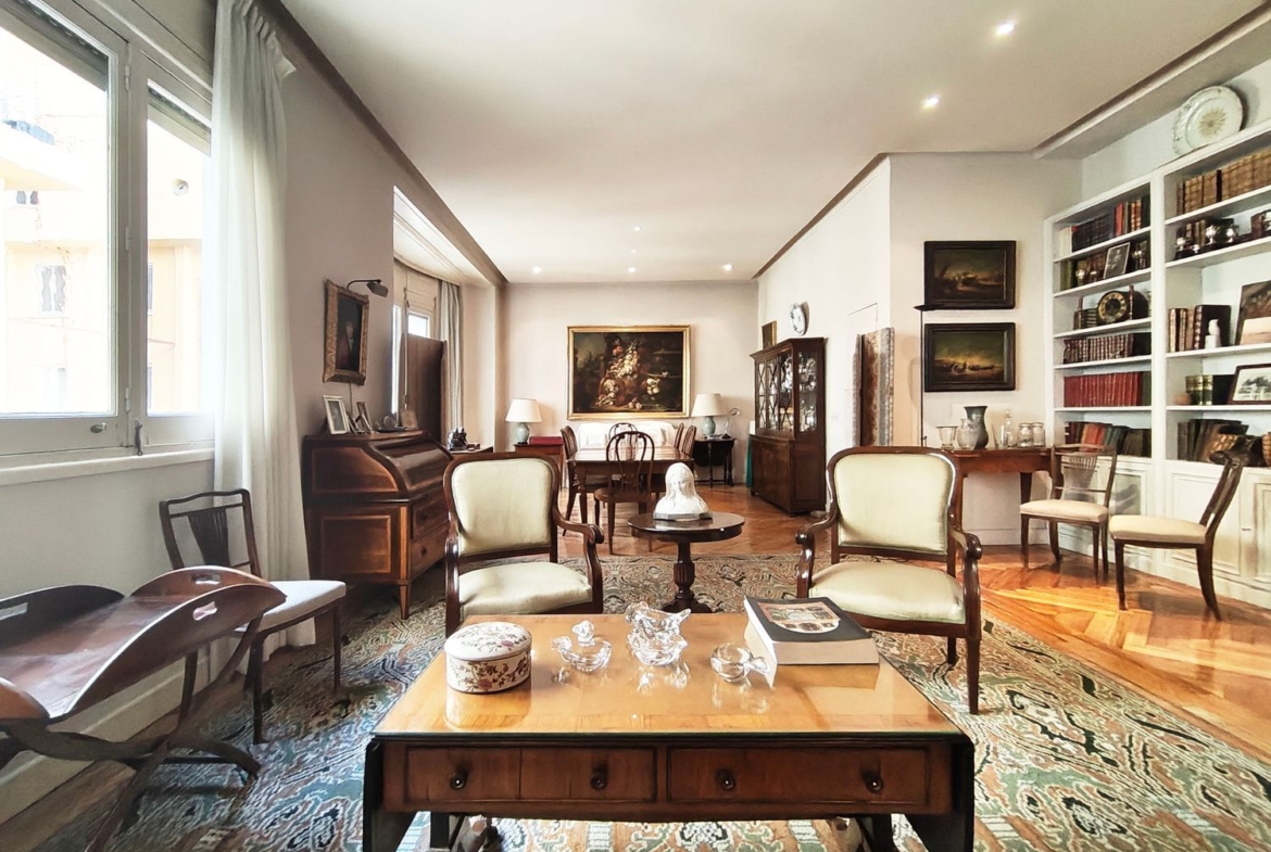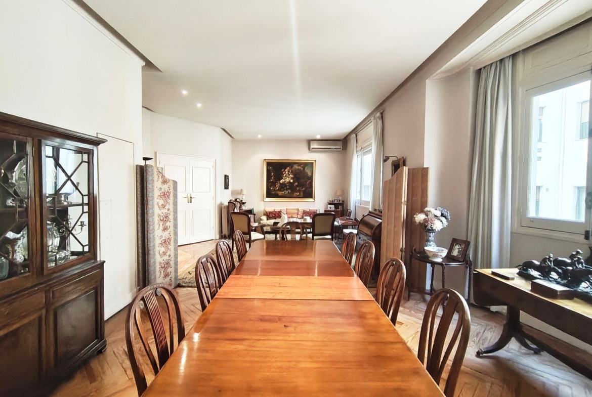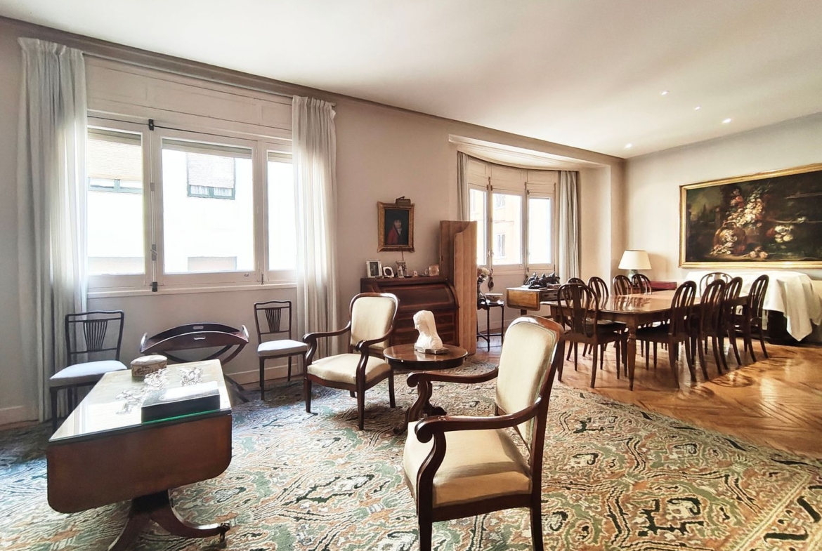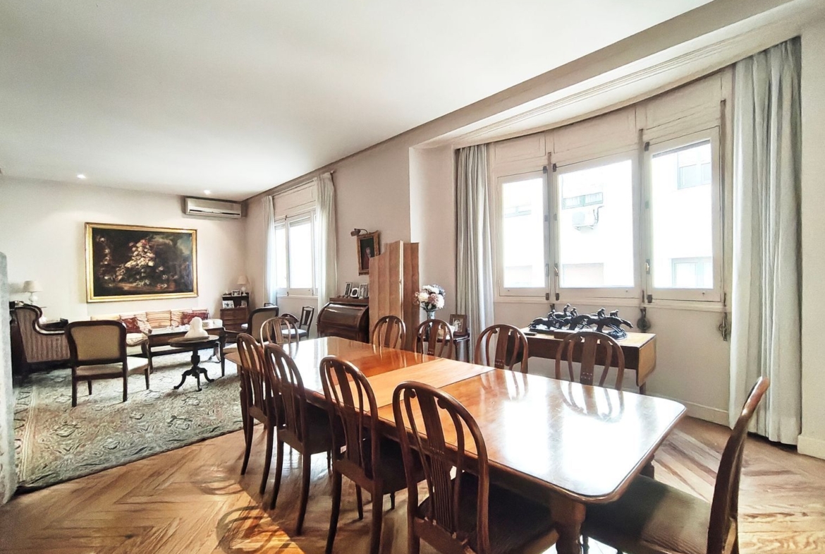 Magnífica vivienda de 177 m2 construidos, en finca clásica con 11 ventanas, muy luminosa y tranquila ya que dan a 3 amplios patios de manzana y a un 4º patio de luces. Con techos altos (de hasta 3,15 m). Orientación sur (el salón comedor) y norte y oeste (los dormitorios).
