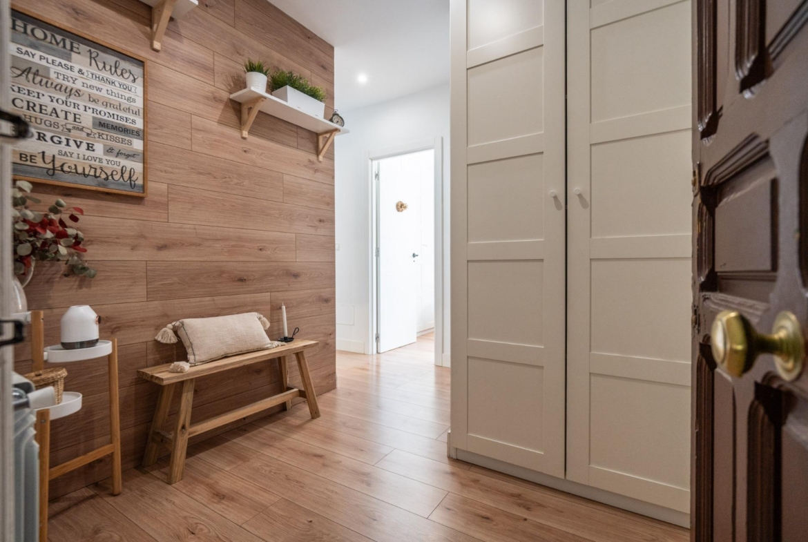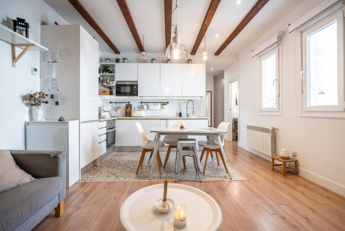 La vivienda ha sido completamente reformada con un estilo contemporáneo lleno de personalidad. Destacan los techos con vigas de madera vistas, el contraste del ladrillo original en el salón y los acabados en tonos neutros que aportan calidez, equilibrio y una estética atemporal. El piso se distribuye en dos habitaciones, un cuarto de baño completo y una cocina abierta al salón que favorece la amplitud y la entrada de luz natural.