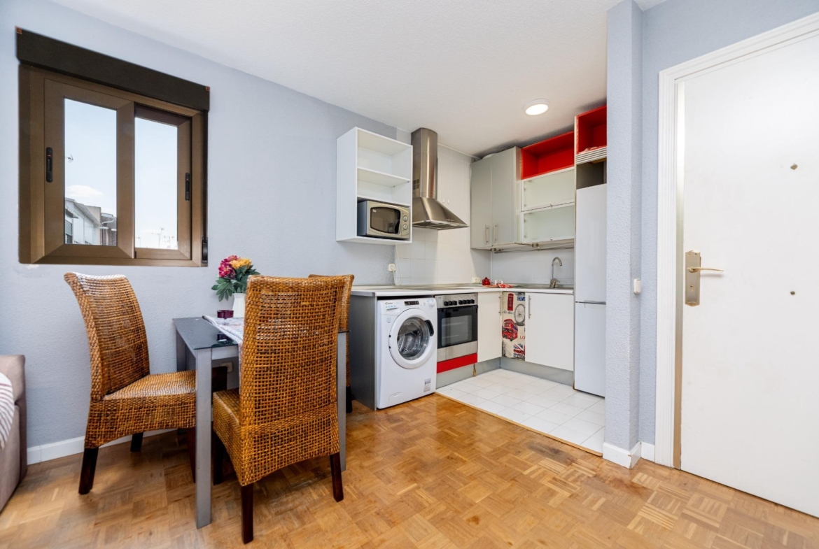 Piso en Majadahonda zona Casco Antiguo, 58 m. de superficie construida , 2.00 m2 de terraza, una habitación con armario empotrado con acceso a un balcón, cocina americana con electrodomésticos un baño exterior.