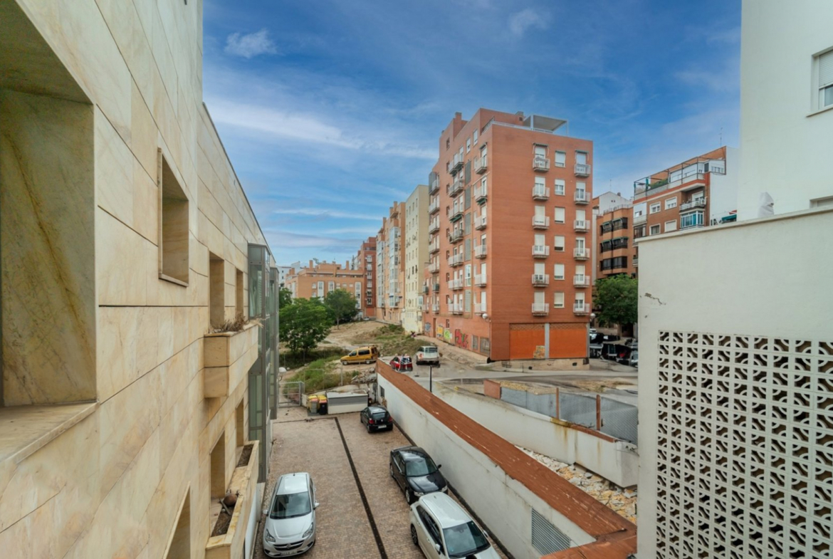 Características: • No se ha realizado reforma, su año de construcción es del 2005. • Barrio: Cuatro Caminos • Superficie construida con elementos comunes: 93 m2 • 2 dormitorios dobles con armarios empotrados • 2 baños completos (1 en suite) • Cocina independiente a medida, con acceso a zona de tendedero, totalmente equipada con muebles y varios electrodomésticos. • Amplio salón • Comedor • Ventanas de climalit tipo doble con rotura de puente térmico • No cuenta con aire acondicionado • Agua caliente por gas natural individual es necesario añadirlo en la descripción • Puertas de madera • Suelos de parqué y paredes lisas • Acceso al edificio adaptado para personas con movilidad reducida • Garaje en superficie