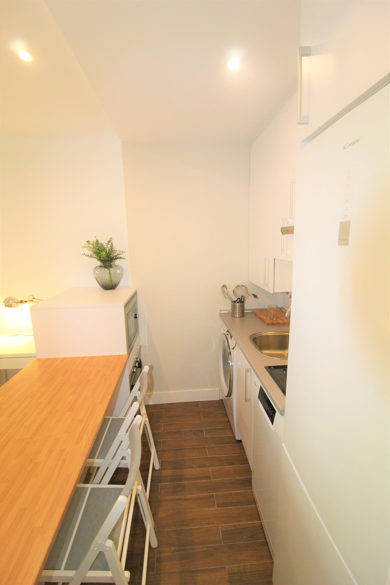El dormitorio tiene cama doble con canapé abatible para disponer de más almacenaje. Armarios empotrados completamente vestidos en la habitación y un baño a estrenar con plato de ducha grande y toallero calefactable.