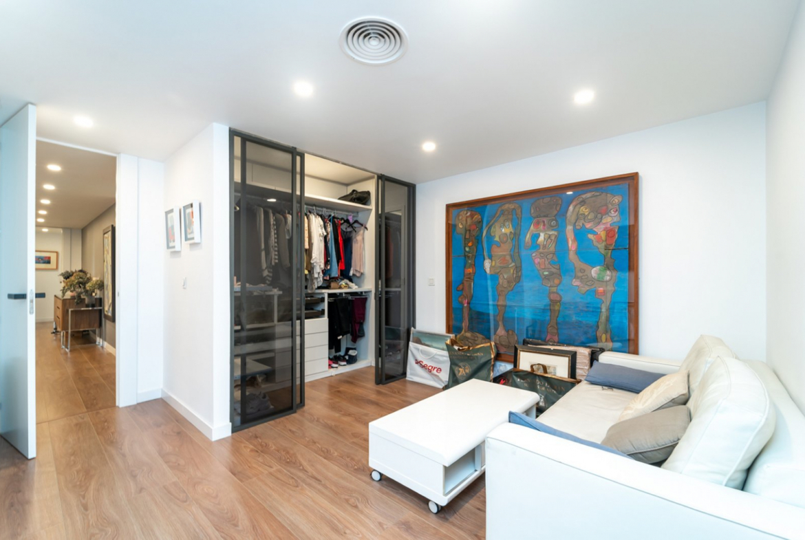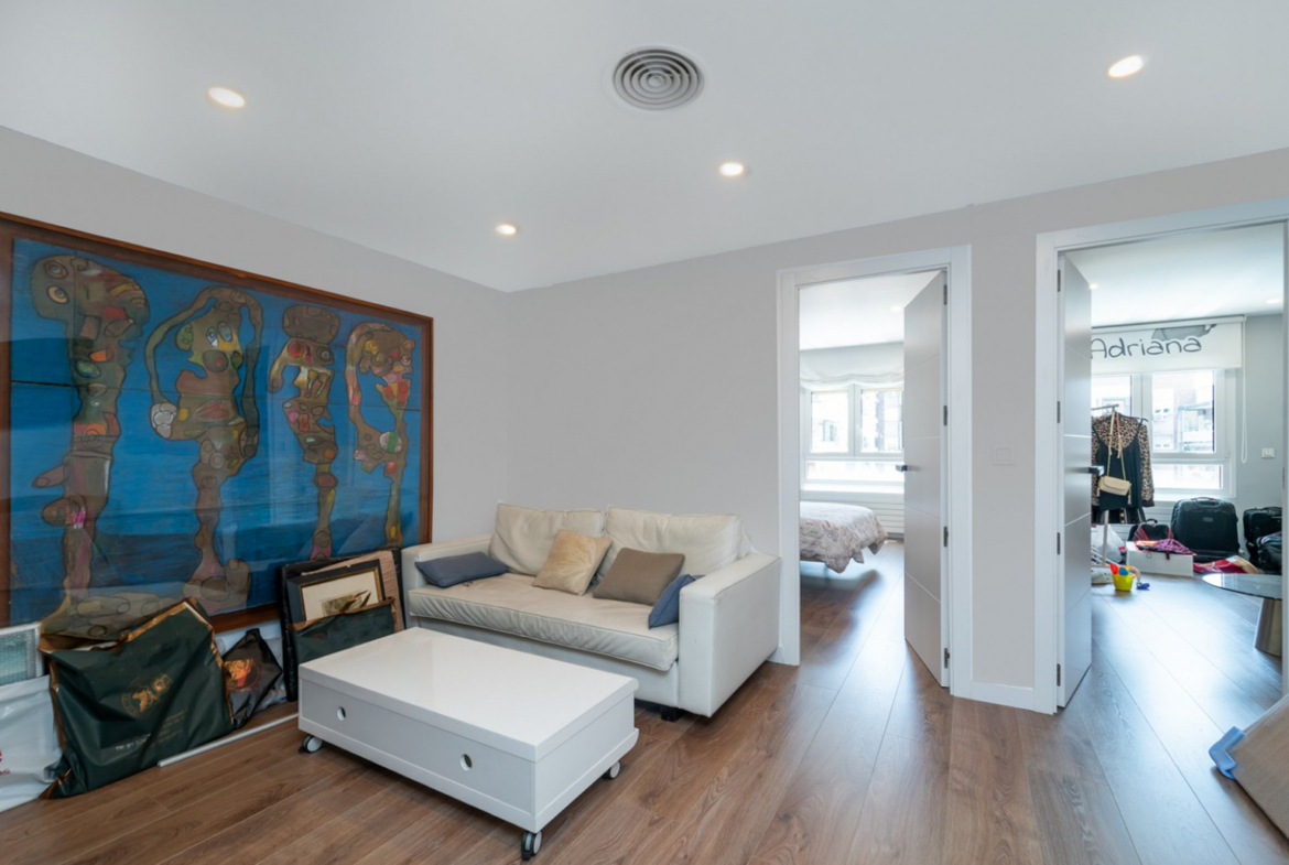 Vivienda reformada en 2020 Barrio: Retiro Superficie construida con elementos comunes: 261 metros cuadrados 4 dormitorios dobles con armarios Sala de estar o despacho 2 baños completos Cocina independiente a medida totalmente equipada con muebles y electrodomésticos Amplio salón – Comedor Terraza exterior acristalada verano-invierno con 22 metros. Ventanas de climalit tipo doble con rotura de puente térmico Puertas de madera lacadas en blanco Suelos de tarima y paredes blancas lisas Puerta de seguridad Piscina y zonas comunes ajardinadas Plaza de garaje en el mismo edificio Servicios de conserjería Acceso al edificio adaptado para personas con movilidad reducida Último recibo de comunidad: 714,28. Se divide en: o Cuota: 285 o Cuota obra extra: 42,10 o Calefacción: 176,32 o Fondo de reserva: 210,86 o Garaje, planta -2 plaza 44: gastos, fondo de reserva 5,90