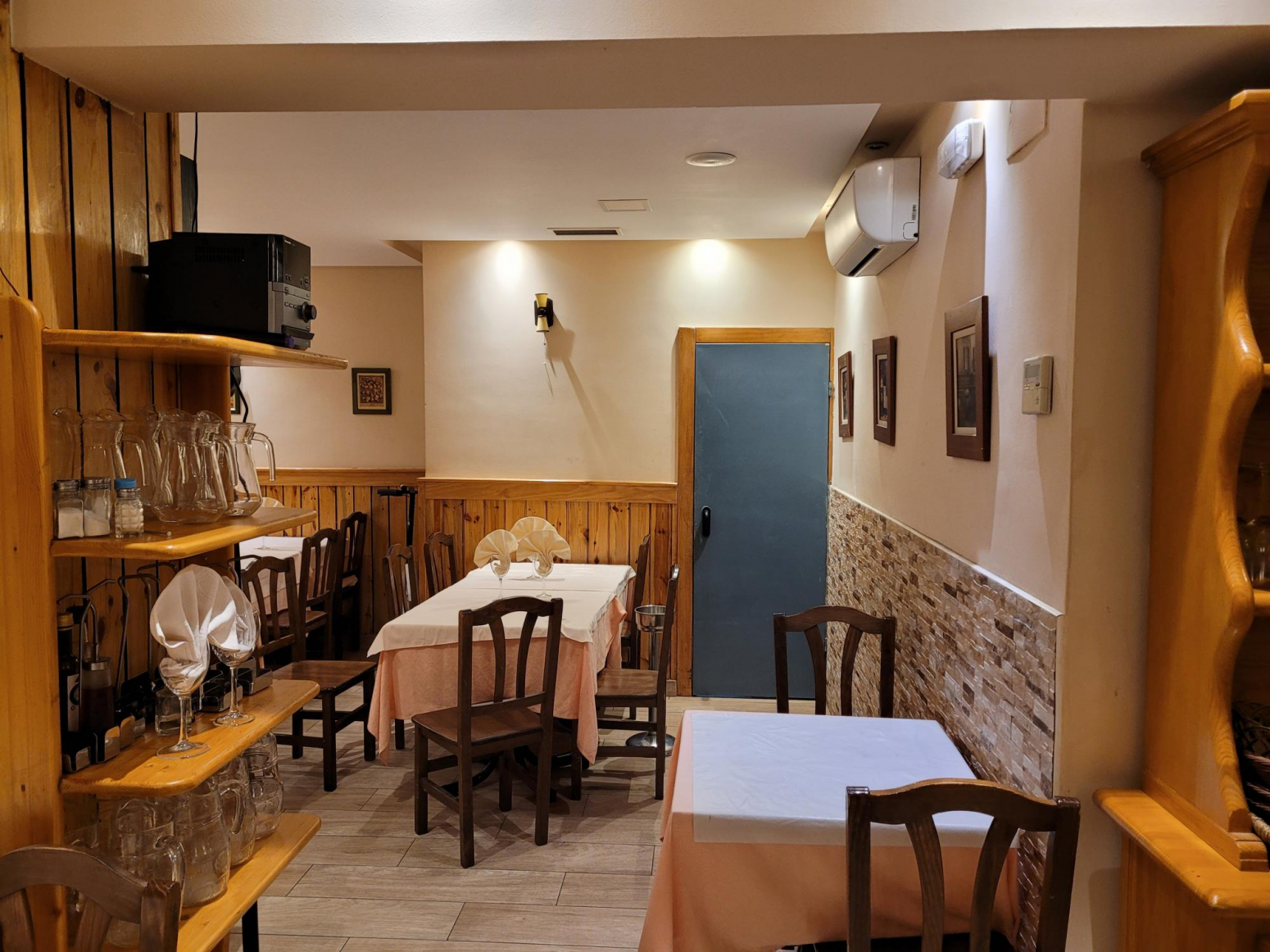 El local tiene salida de humos, un salón independiente con capacidad para 89 comensales en planta baja más capacidad para 54 comensales en planta principal. Además cuenta con una gran terraza en el exterior con capacidad para 17 mesas. La terraza está cerrada en aluminio y tiene sistema de refrigeración, calefacción, aspersores, música.. . por lo que es practicable durante todo el año.