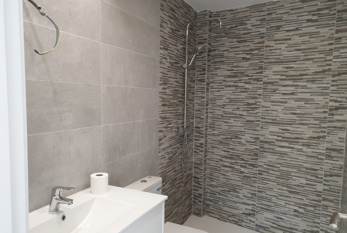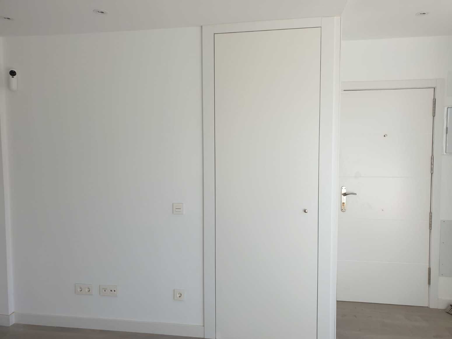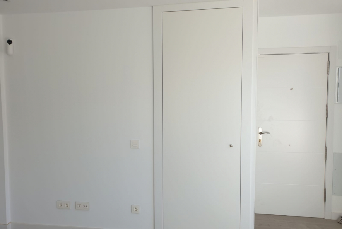 Agua caliente con placas solares, bomba de calor y frío, puertas en blanco, carpintería exterior en aluminio lacado en blanco, con doble acristalamiento de seguridad, suelos en tarima y porcelánico en baño.